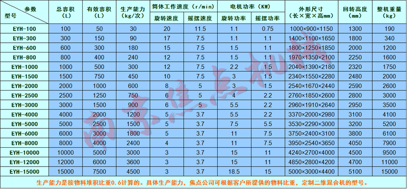 一、設備介紹 EYH型二維運動混合機主要由轉筒、擺動架、機架三大部分構成。轉筒裝在擺動架上,由四個滾輪支撐并由兩個擋輪對其進行軸向定位。在四個支撐滾輪中,其中兩個傳動輪由轉動動力系統拖動使轉筒產生轉動,擺動架由一組曲柄擺桿機構來驅動,曲柄擺桿機構裝在機架上,擺動架由軸承組件支撐在機架上。 EYH型二維運動混合機廣泛用于醫藥、化工、食品、染料、飼料、化肥、農藥等行業尤其適用于大噸位(1000L~10000L)各種粉、粒狀物料的混合。 二、設備原理及特點 EYH型二維運動混合機的轉筒可同時進行二個運動,一個為轉筒的自轉,另一個為轉筒隨擺動架的擺動。被混和物料在轉筒內隨轉筒轉動、翻轉、混和的同時,又隨轉筒的擺動而發生左右來回的摻混運動,在這兩個運動的共同作用下,物料在短時間內得到充分的混和。 混合筒的出料帶有螺旋葉片,使混合機具有混合迅速、混合量大、出產便捷等特點。EYH二維混合機適合所有粉、粒狀物料的混合。 三、設備優勢 1、進料口蓋板上設有真空上料接口,可與真空上料機快速連接,實現自動上料,降低了勞動強度,提高了效率,同時也實現了無塵操作,不污染車間環境,符合GMP規范。 2、混合筒體在轉動的同時又作擺動運動,故混合效率高,物料混合均勻性可達99%。 3、筒體傾斜角度最大為30度,以防止高位加料時出現堵塞現象,同時也便于出產。混合筒內設有出料導向板,出料快捷、徹底、無殘料。 4、出料采用真空蝶閥,操作方便,出料量可控制,無粉塵。 5、加料端設有臺階與加料平臺,面板為不銹鋼花紋板,防滑堅固,便于操作人員對設備加料。 6、電器控制箱密封良好 ,防塵防潮,提高了電器控制的安全性能及使用壽命,設置、操作方便簡易。 7、本設備的筒體采用優質不銹鋼制作,支架外包不銹鋼,內外均經精密拋光處理,表面光潔易清洗,無死角,符合GMP要求。 四、型號參數