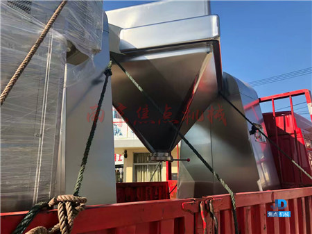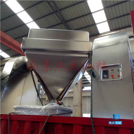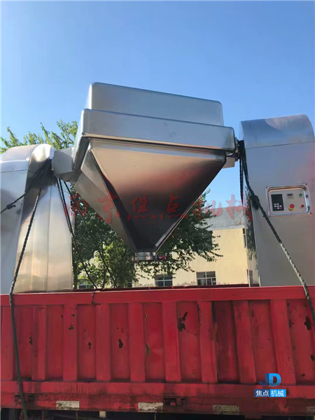 將物料裝入方錐形密閉混合桶內,混合桶對稱的軸線與回轉軸線成一夾角,不同組物料在密閉的混合桶中進行三維空間運動,產生強烈翻轉和擴散收縮作用,達到最佳的混合效果.